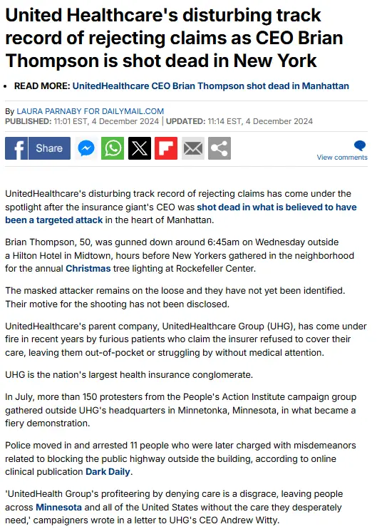 Oh, you thought CEOs of very large multinational insurance corporations, made decisions, daily about whether to accept or reject specific requests on specific policies. No. They don't.Not sure who PJ is, but right now a man has been gunned down and murdered. Let’s not jump to the liberal tactic of blaming the victim and making excuses for a violent criminal.