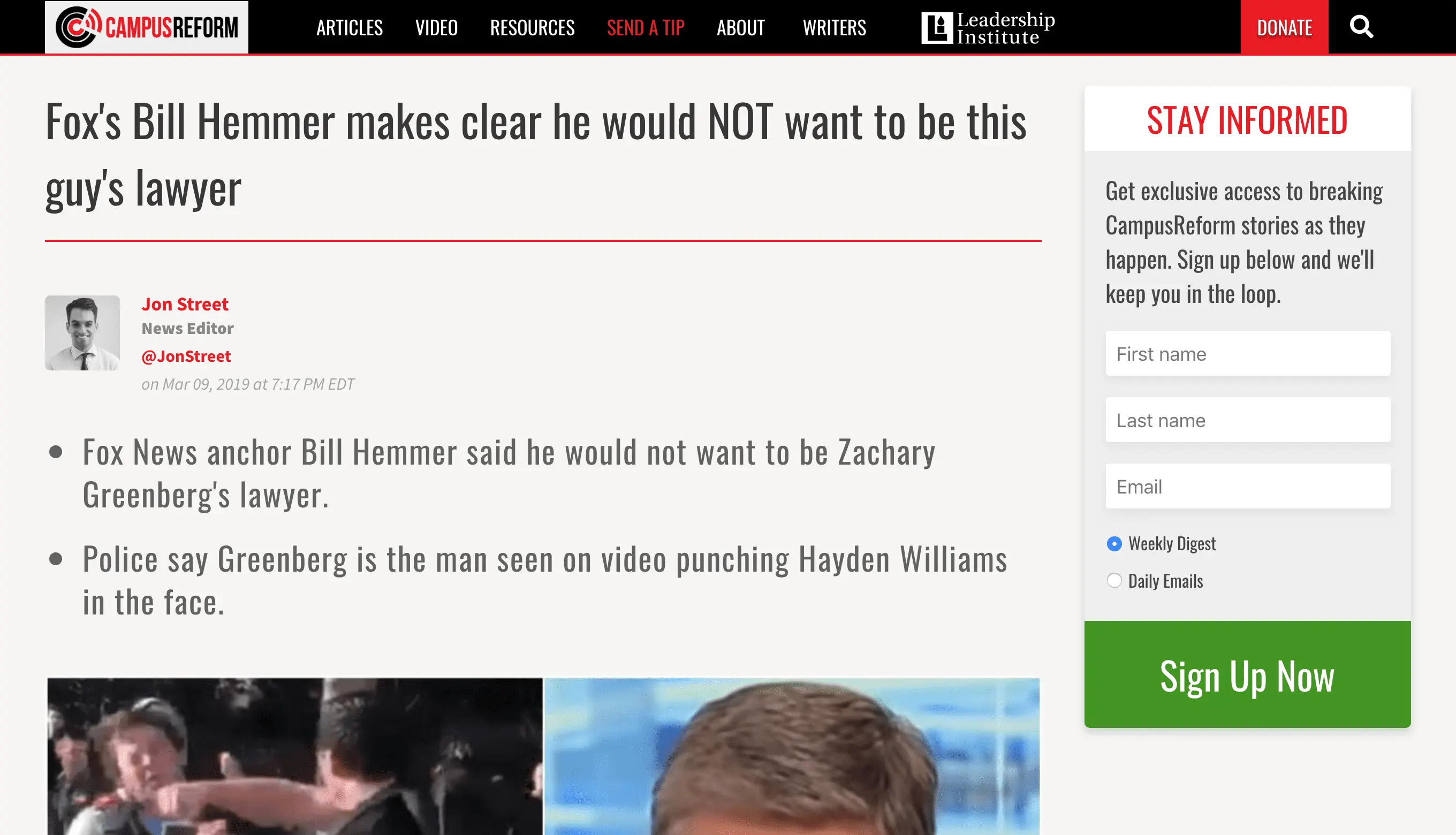 Fox News anchor Bill Hemmer doesn’t seem to think Zachary Greenberg’s lawyer has much of a shot with winning her client’s case.