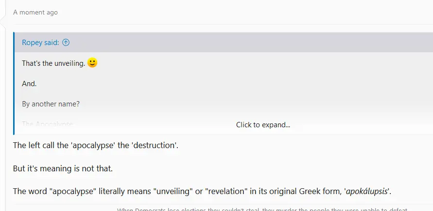 talking to himselfThe left call the 'apocalypse' the 'destruction'.