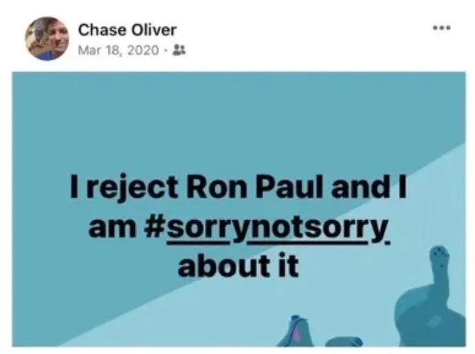Who cares? He's not getting elected.But is it anything Chase Oliver ever actually posted?