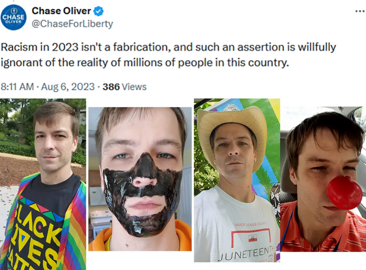 Oliver claims to be "Armed and gay." Or something retarded like that. That's "identity politics." Something the R & D's have coined. The LP is supposed to too grown up for such things. But the pink/blue haired leftist weirdo's that have infiltrated the LP, has brought the party back to it's high school daze.