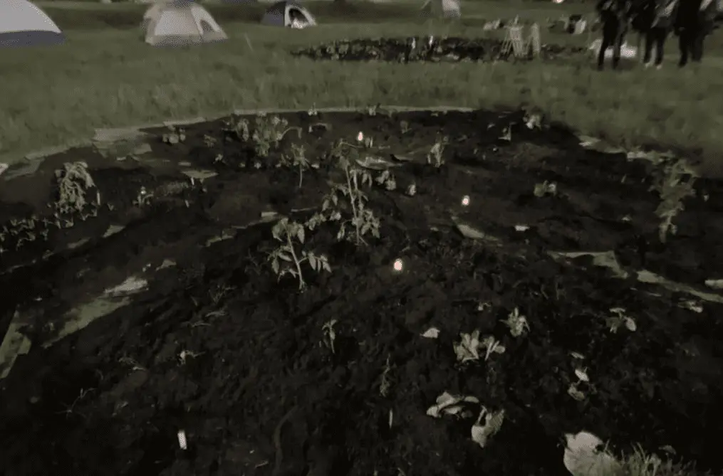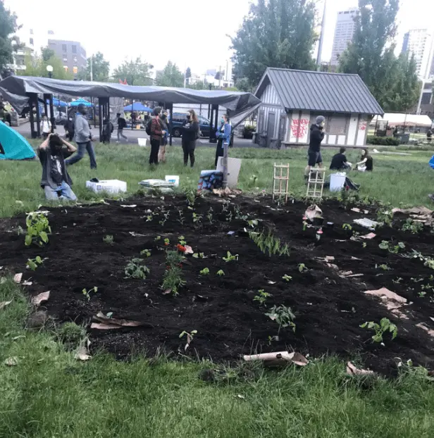 And this one is called "Socialist Science". The put down cardboard and top soil, and then potted plants on top of it.