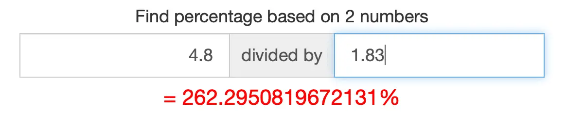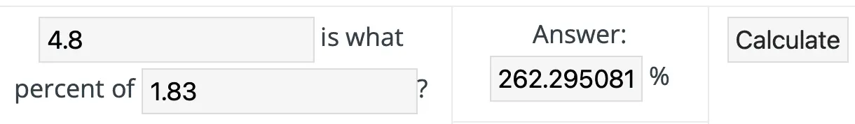 HMMM... Seems 4.8% is 262% greater than 1.83%!!!!