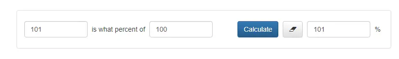 I just post what I read from this web site..https://www.percentagecal.com/answer/101-is-what-percent-of-100I know what percentage it is, you don't know how much larger it is.