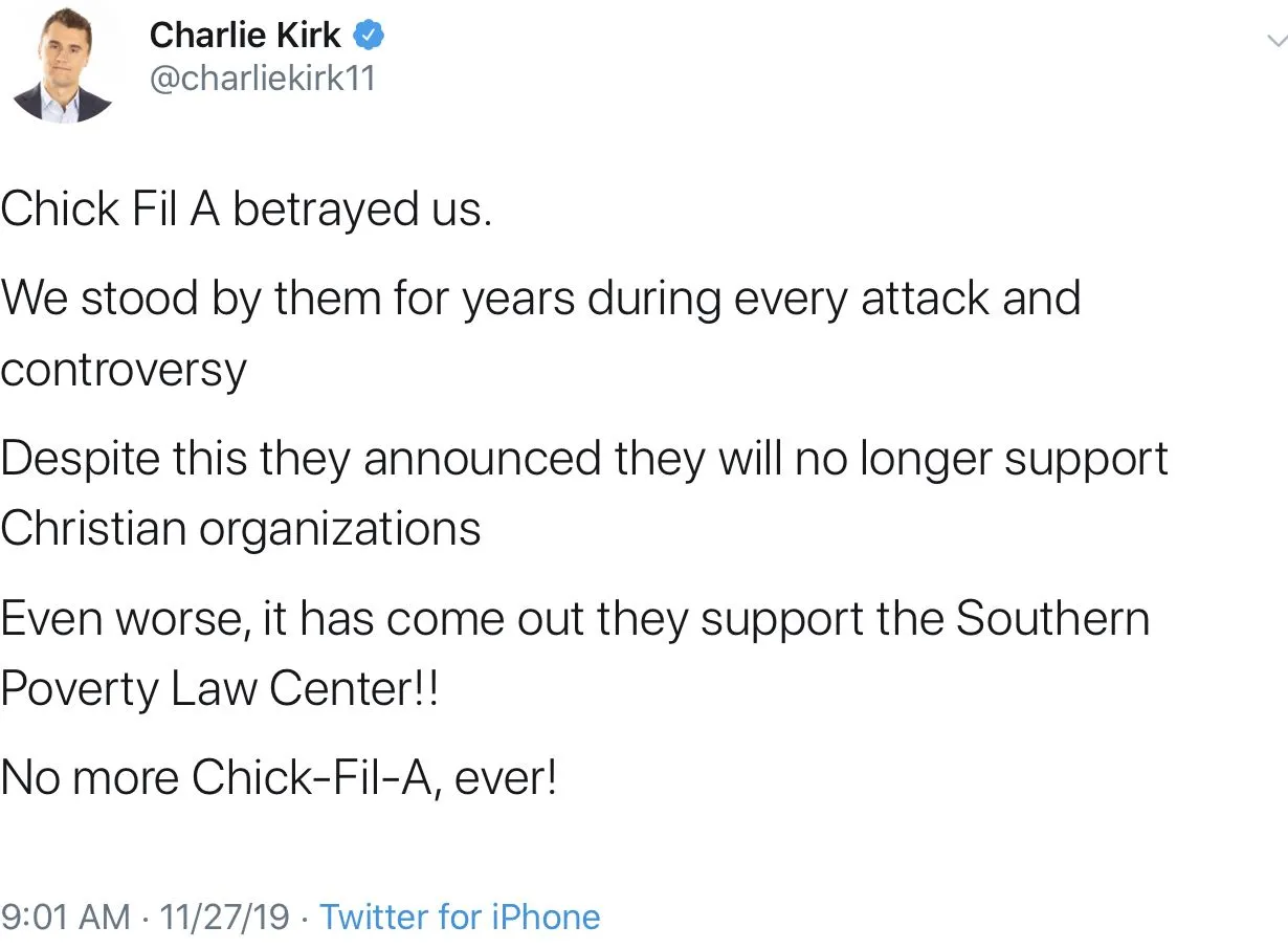 You’re right. I didn’t look hard enough. I relied on the search function on this site - like the mods always tell us to do.You didn’t look hard enough. The story has already been beat to death and debunked.Hey mods - fix the damn search. I dutifully searched thread titles before creating my thread and there were no current threads with ‘Chick Fil A’ in the title.
