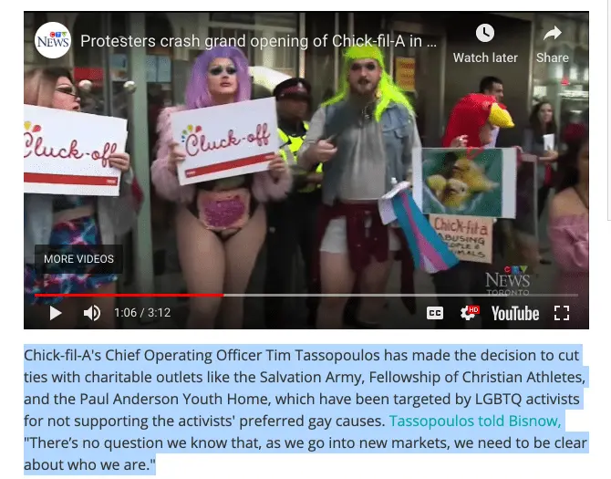But CFA does not sell fried chicken as the other liberal claimed