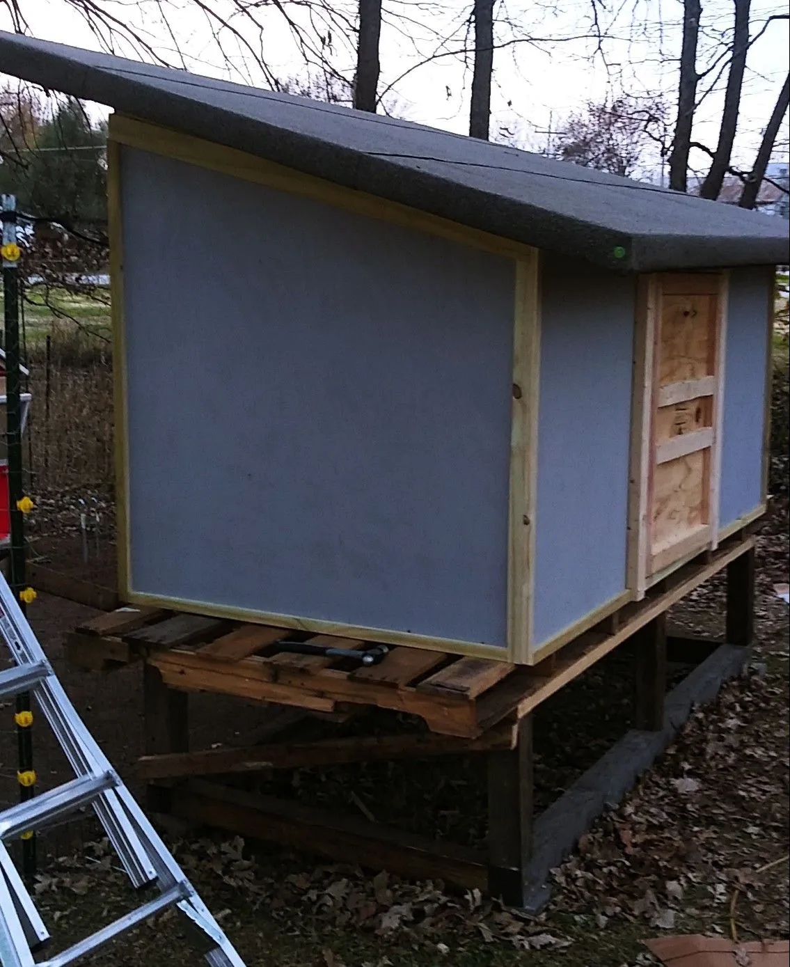 Believe it or not this 4x8x4.5 foot coop cost almost $400 in materials, not including the base which was scrap and leftover.