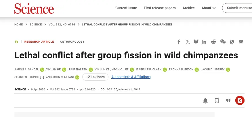 The worldâs largest-known group of chimpanzees split into two factions that are now engaged in deadly combatApril 9, 2026