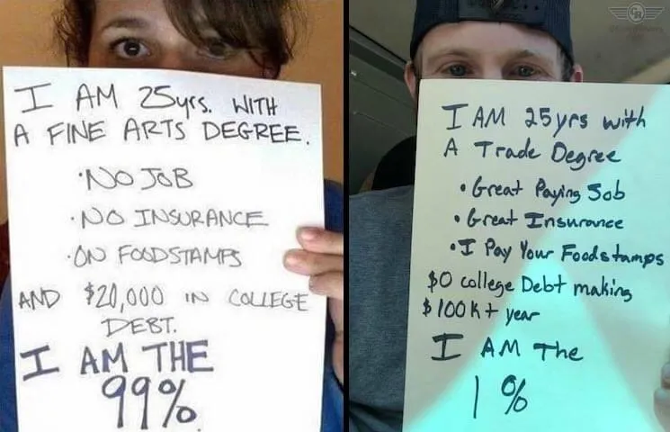 Yup. A young man who I was tutoring in geology for his college class was clearly not happy in academia so I suggested he try a trade school. He enrolled in a linemans school and had a job before he graduated. He paid 17k for the school, and had that paid off in 6 months.