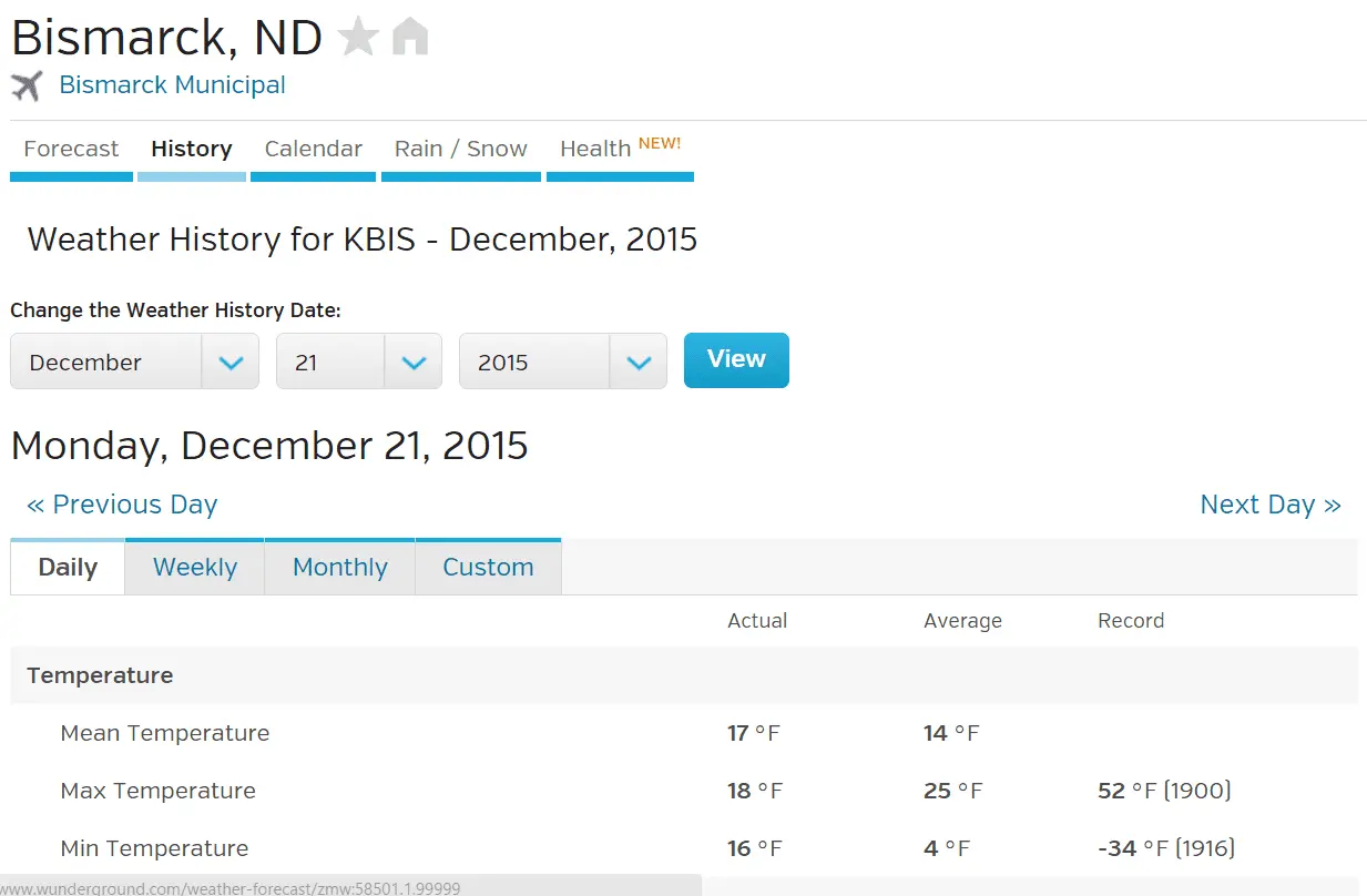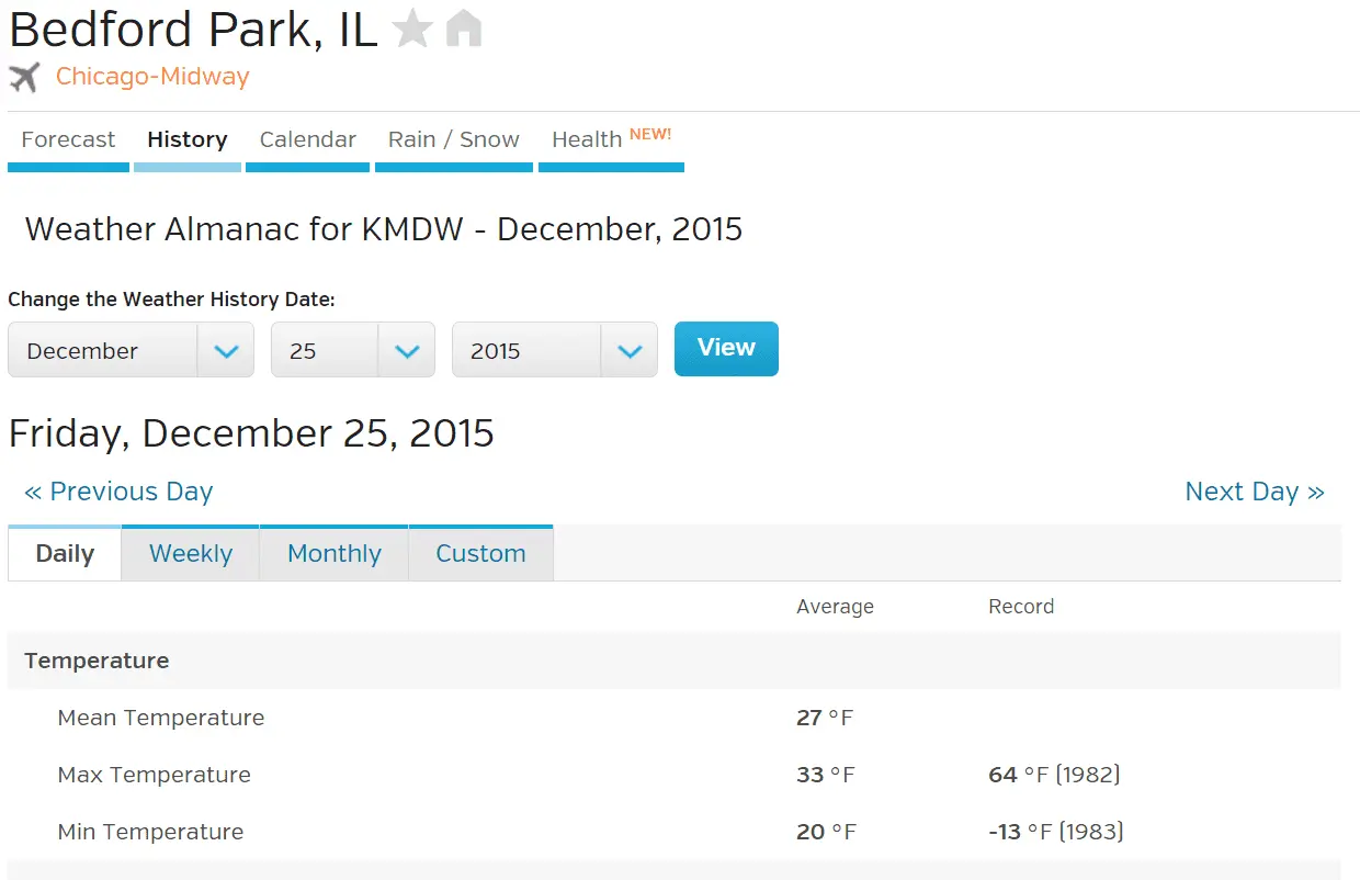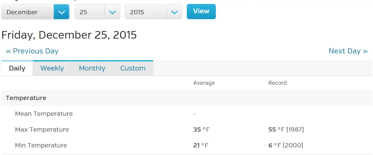 I picked a few places. The first is where I lived 40 years ago, remember 55 in December is warm.
