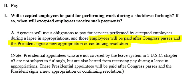 But from what I read in the government booklet regarding shutdowns, regarding pay it states....