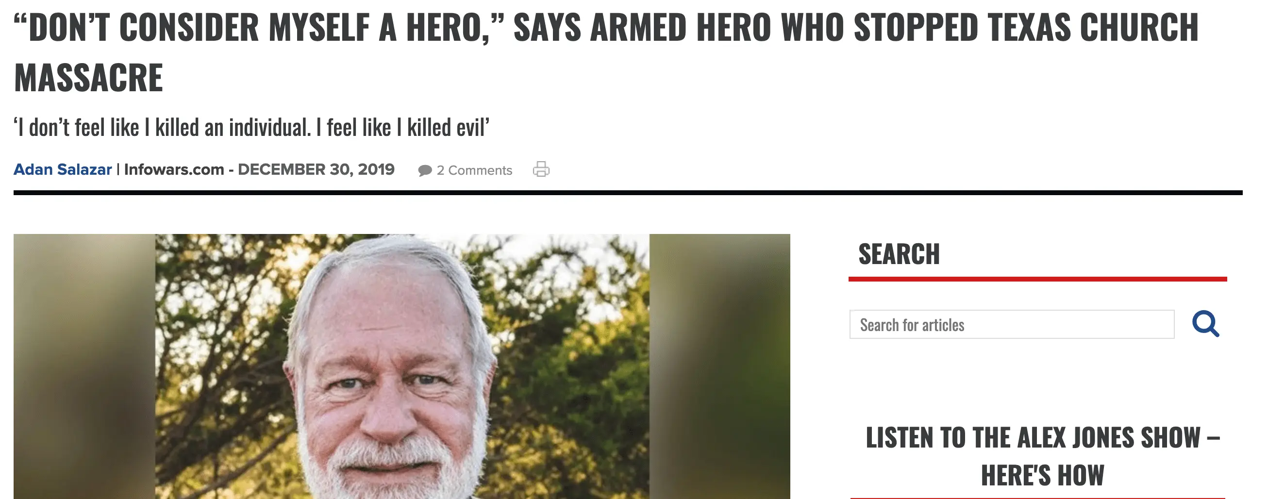 “Don’t consider myself a hero,” Says Armed Hero Who Stopped Texas Church Massacre