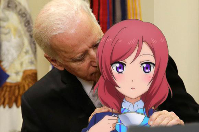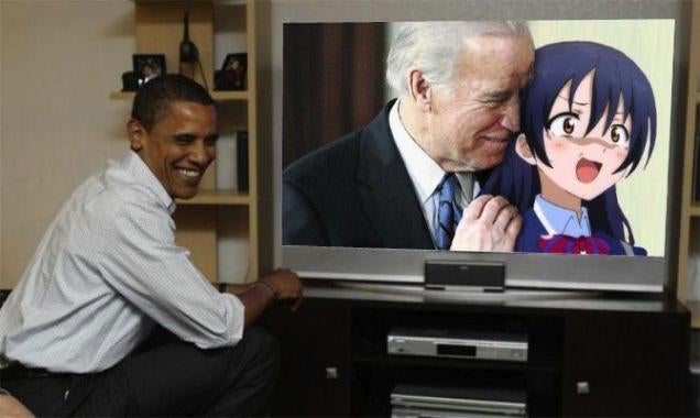 What is it with this administration? First the President goes on an anime-is-real crusade, and now Vice President Biden is invading the personal space of anime girls. Sheesh!