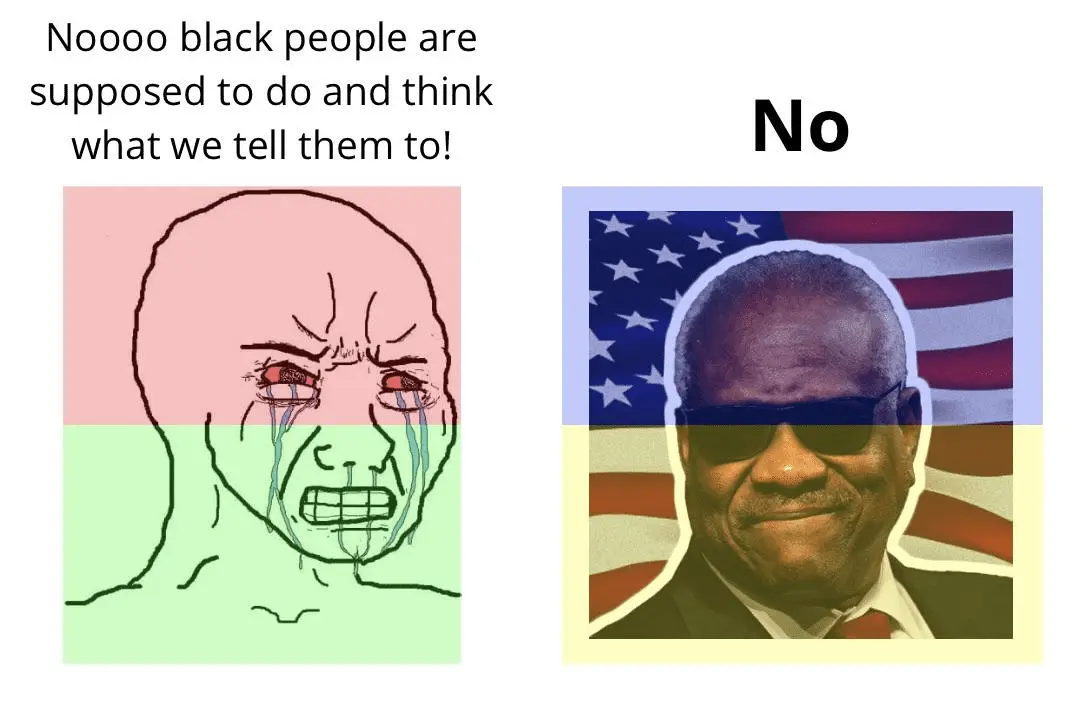 Clarence Thomas is a sellout. And the only people who support him are enemies of equal opportunity and of American democracy. His wife is an insurrectionist, and so by extension that makes him one. And yet he sits on the Supreme Court. He took the place of Thurgood Marshall. And Marshall is turning around in his grave like he's on a rotisserie because of the choice the first Bush made.