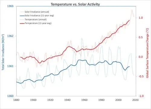 Your solar irradiance graph shows two cooling periods- the Maunder Minimum and the Dalton Minimum that marks the end of the LIA. The rest of the time (and the current time) it's flat.