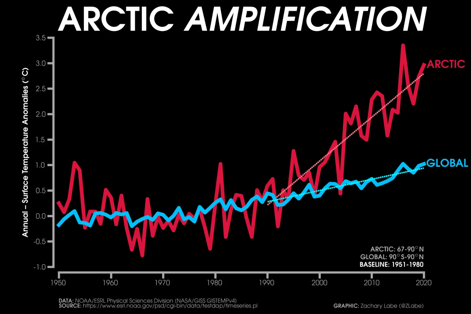 "The AA did not change in a continuous fashion but rather in two sharp increases around 1986 and 1999. During those steps the mean global surface air temperature trend remained almost constant, while the Arctic trend increased. Although the “best” CMIP6 models reproduce the increasing trend of the AA in 1980s they do not capture the sharply increasing trend of the AA after 1999 including its rapid step-like increase. We propose that the first sharp AA increase around 1986 is due to external forcing, while the second step close to 1999 is due to internal climate variability, which models cannot reproduce in the observed time."