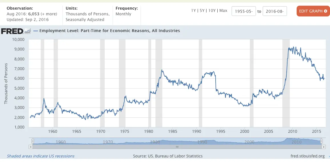 How is showing that those working part time for economic reasons is going DOWN under Obama proof that they're going up?No it doesn't. Whatever Obama says or doesn't say for Obamacare, BLS has always classified Full time as 35 or more hours and part time as 1-34 hours.Obamacare says a full time job is 30 hours. Which means historically all the jobs before Obama were 40 hour jobs!