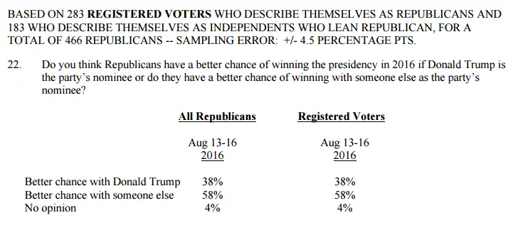 - Overall Trump scores 24 per cent support among registered Republicans, nearly twice the number posted by nearest rival Jeb Bush