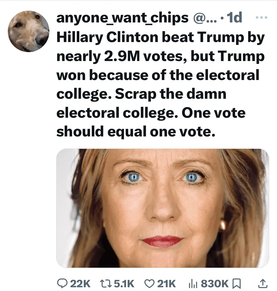 /——-/ On X the push is to eliminate the EC. This is why libtards are pushing the lie that we are not a Republic.![]()