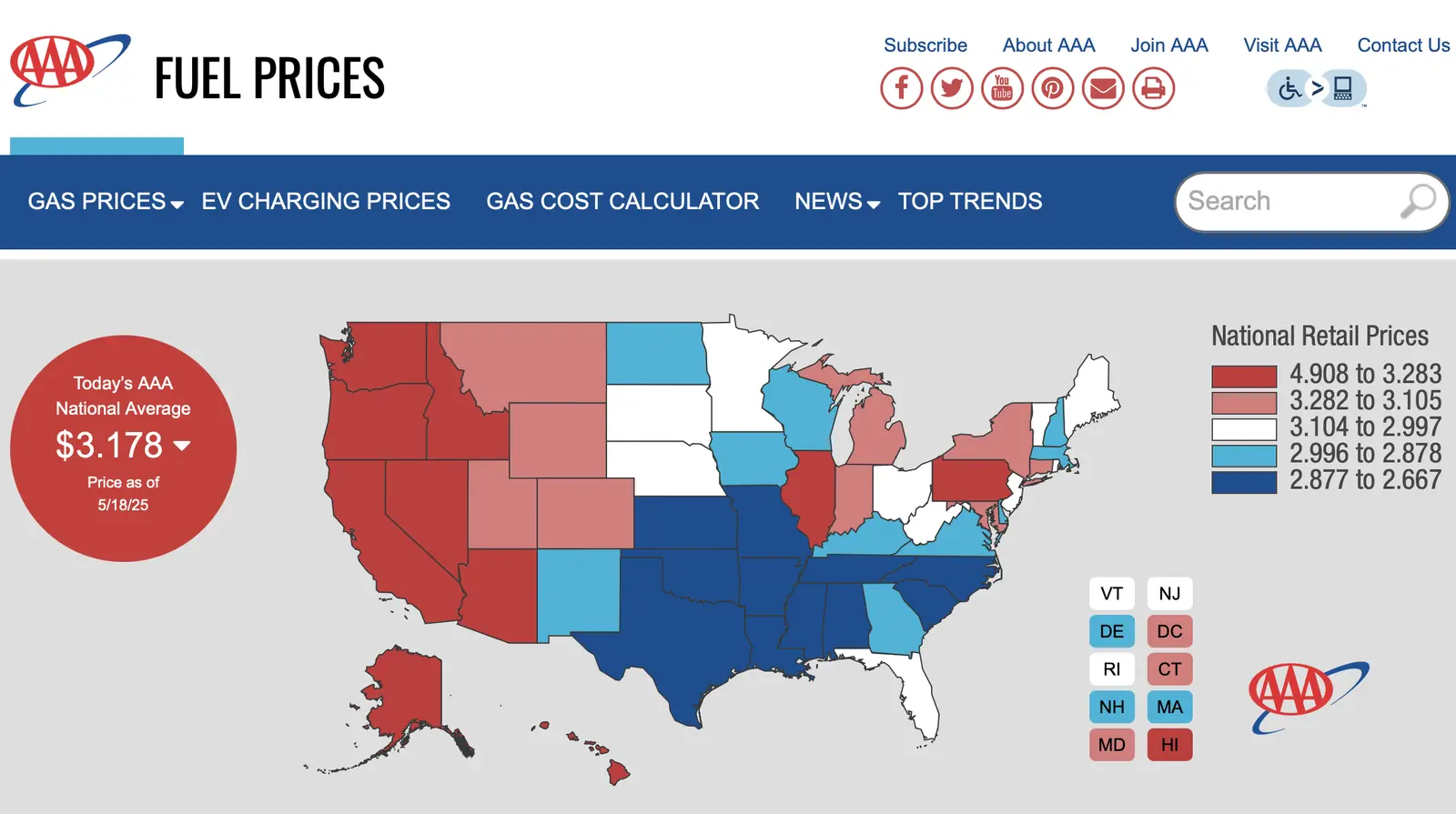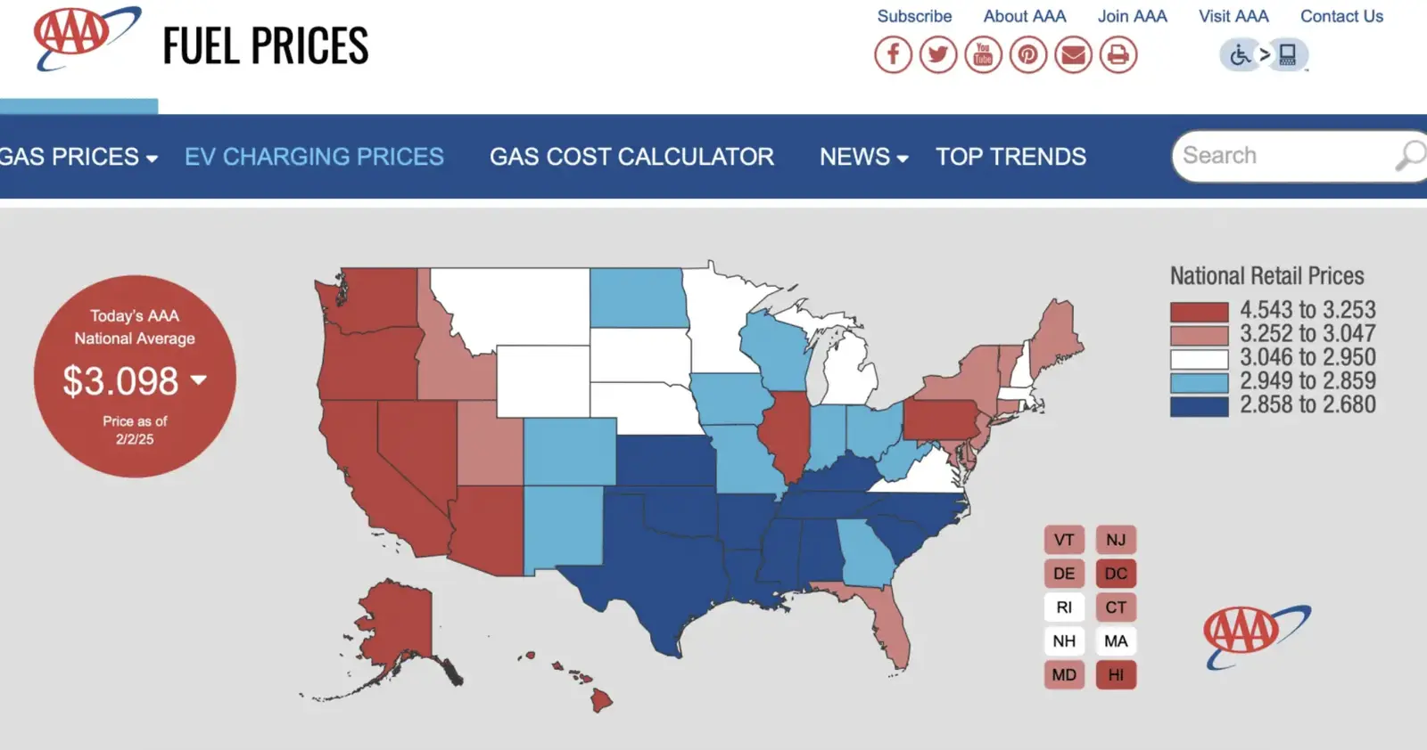 Like I said. Who cares. I see several states in that chart the prices went down yet the average is up. My prices are way down.They are, according to AAA, since Jan 20th.