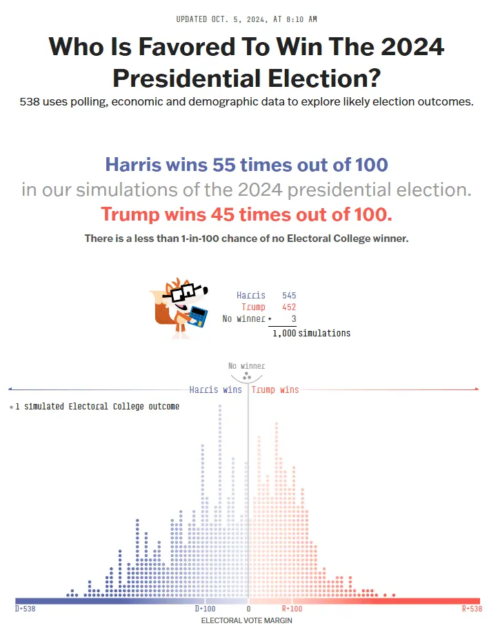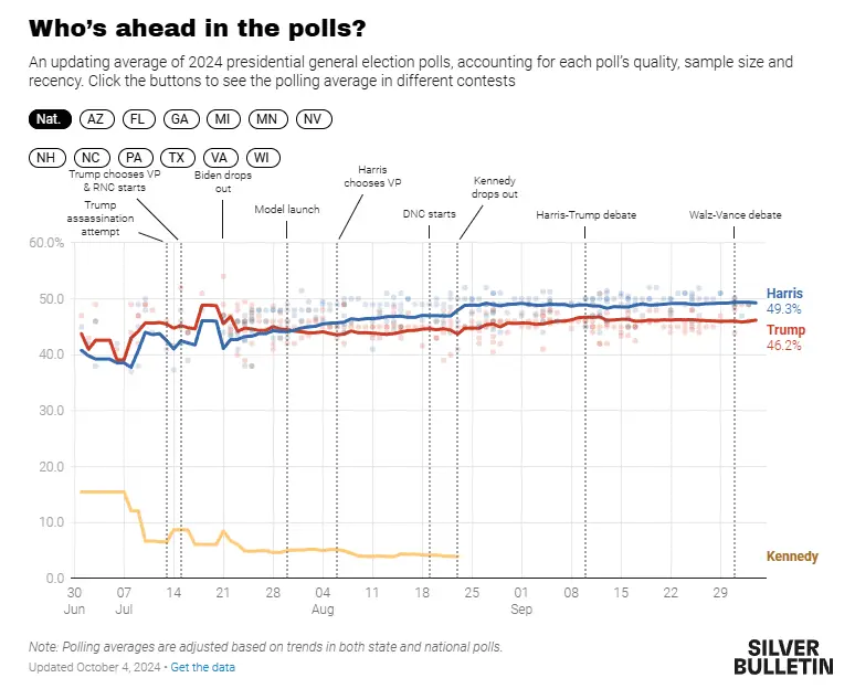 Hey stupid, we don’t elect Presidents via the popular vote.Here's what's on the Silver Bulletin website as I type: