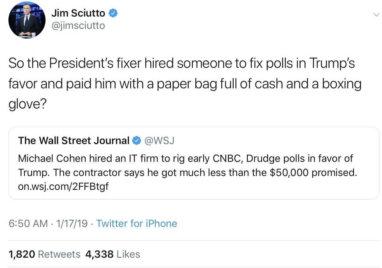 Cohen Hired IT Firm to Rig Early CNBC, Drudge Polls to Favor Trump