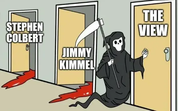 So Let it be written--So Let it be done-- Kimmel is kinda reinstated ,but Half the Stations will not Air him--And his Contract is up in 2 Months--Bye Bye ,Jimmy