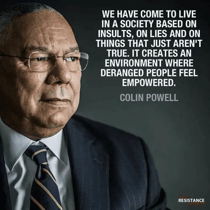 We have an endless supply of empowered deranged white person that was too stupid to cash in on his white privilege on this site.Colin Powell is a true American hero. There are great examples of the deranged people who feel empowered on this message board.