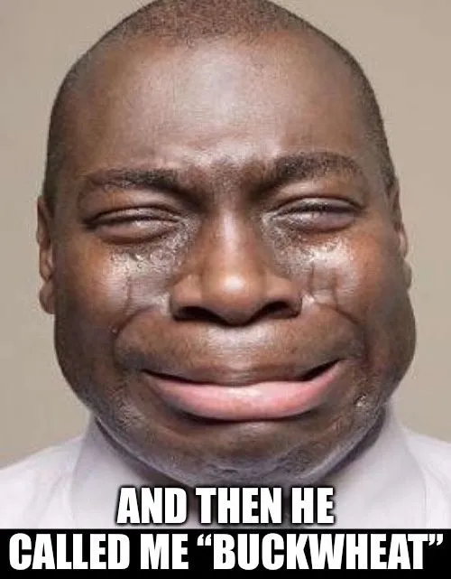 Nah...you're too afraid.I never thought of it before, I’ll start using it though.How many black men have you called Buckwheat to their face?Really? You get your panties in a bunch being called “Buckwheat”? LOL
