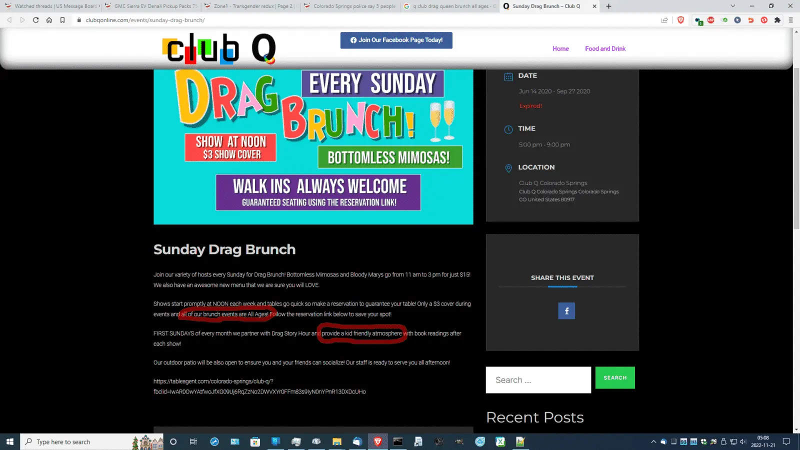 We're talking about a business that explicitly advertises “all ages”, sexually-charged “drag queen” events, with a “kid friendly atmosphere”. We're talking about a business that sexually grooms children, and people who patronize this business, knowing damn well what they are supporting by patronizing this business.