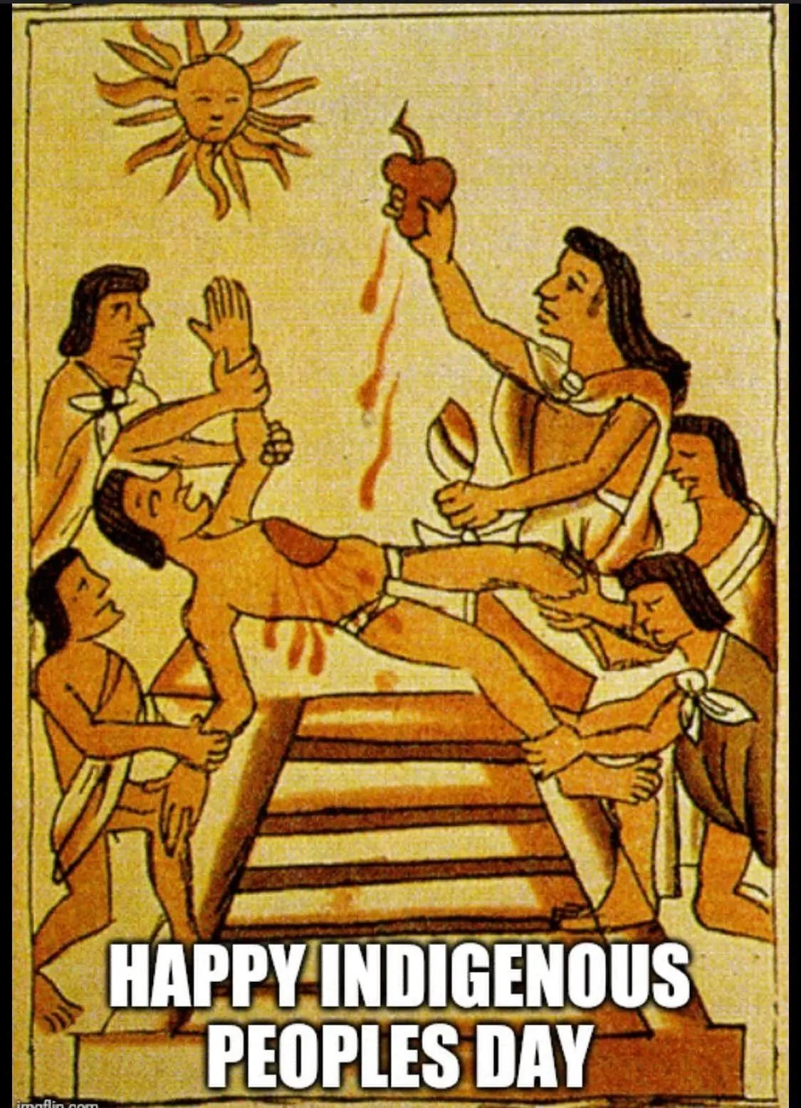 "Indiginous People's Day?" Give me a break. The natives that the Mayflower pilgrims met were not "Americans." They could not have drawn you a map of the Continent, or even much of their immediate surroundings. They could not have guess how far the ocean went from their shores, they had never had the brains, courage and initiative to explore it.