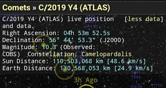 Comet ATLAS (C/2019 Y4) Real Time Position Tracker | TheSkyLive.com