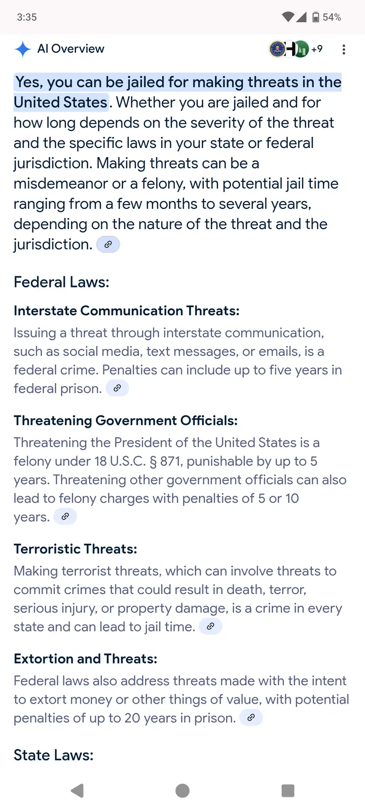Yes -Can he serve time for making threats to the president?