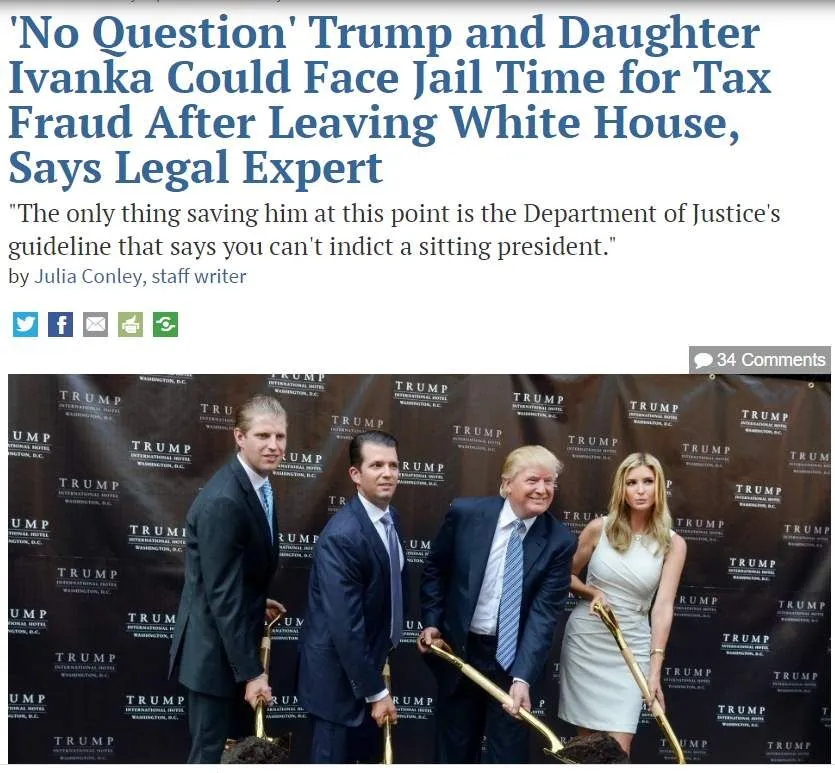 Trump and IVanka could be a Toofer because he paid her hundreds of thousands of dollars as his tax advisor and then wrote all that off as a tax write off. Thatās multiple felonies on different levels.
