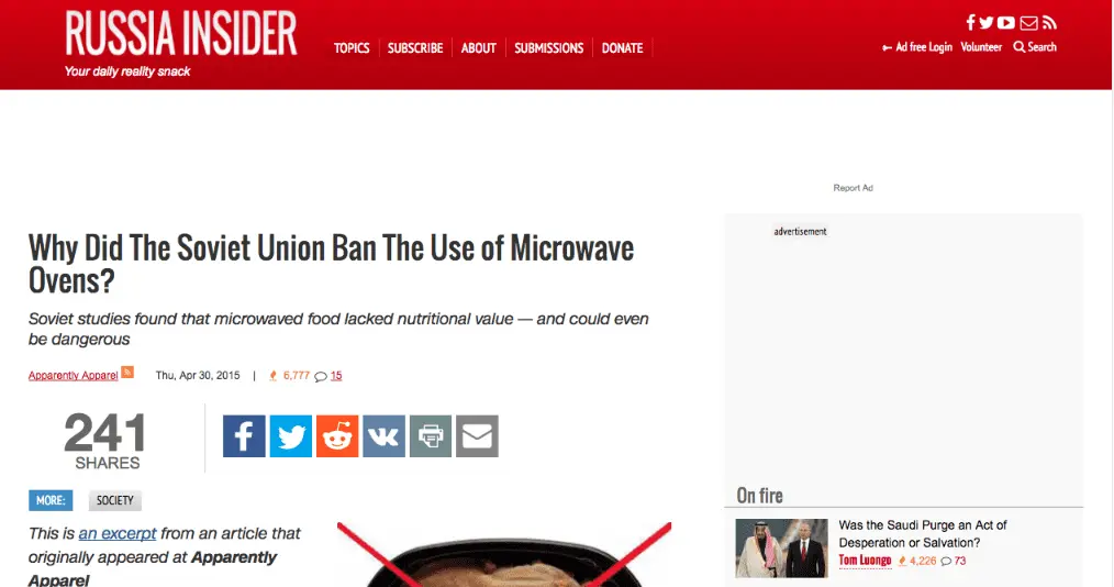 Russia banned Microwaves a long , long time ago they sort of brought them back but most who don't live in their safe world knew about the dangers of microwaves. Oh and imagine how safe they are why The FDA, EPA has passed them lmfao.