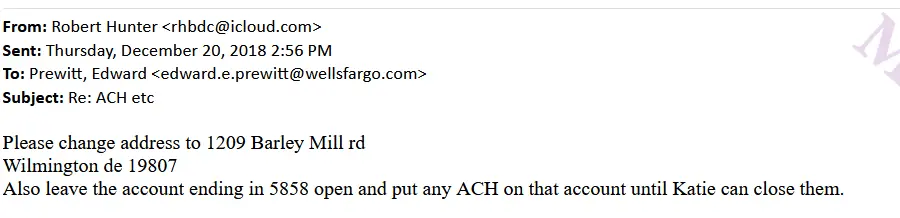 Hunter updates his address at Wells Fargo