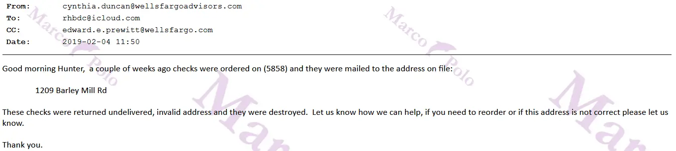 Strangely, Hunter Biden's checks were undeliverable. Probably because no one was home watching the locked garage. This is concerning.