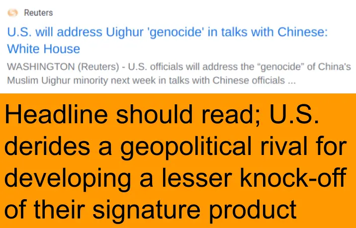 You're spot-on about how appearances matter, even though in a perfect world there would be no need for these word games. Political leaders know full well they are playing this game and the prize is a favorable public opinion. Even China cares about that it seems which is a bit surprising to me...but admitedly I'm still learning.Yes, even though this is nothing but window dressing and has no real teeth in it, I suppose it's a good thing that Beijing Biden is actually attempting to APPEAR like he respects U.S. sovereignty.Sanctioning China.