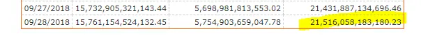 FY-18 ended on 30 Sept 2018. On that day the total debt was $21,516,058,183,180