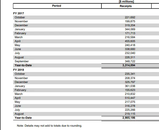 Taken from the Monthly Treasury Statement, we find these numbers.