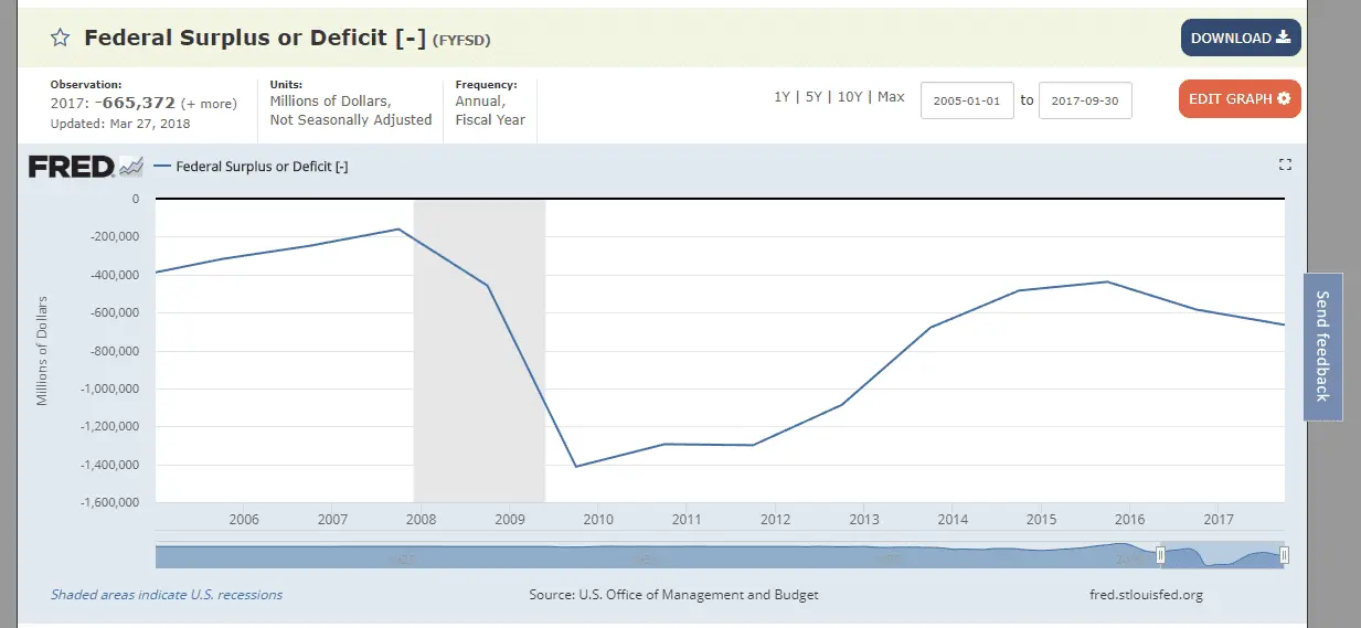 Big ******* deal they lowered the deficit while increasing the debt just like every other president since CoolidgeEvery Budget Clinton & Obama signed Lowered the Deficit. Every one Trump signed & most Bush signed Increased the Deficit!Actually, FY2008 was the first trillion dollar deficit.The first $Trillion dollar deficits were signed into law by BUSH that ran until October 2009!!! Obama Reduced the Deficit Every Year!Bush nearly doubled the debt and increased GDP at a lower rate than Obama.Deny, deny, deny. Obama doubles the debt and gives us the slowest continuing GDP growth in history. Trump comes along and reverses Obama's policies, gives us record low unemployment, higher wages, higher GDP growth, and all you're able to do is point to a slight increase in the deficit and try to hold him responsible for 200 years worth of debt (half of which belongs to Obama). And sticking to your liberal talking points you just can't bring himself to give Trump credit for anything but happy to blame him for the disasters of his predecessor. You can go back to wringing your hands now and whining about Donald Trump's booming economy. I'll be enjoying some of the newfound prosperity we never saw for 8 years under the Kenyan dictator. See ya.