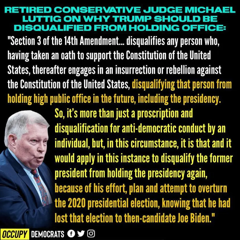 Except, apparently, you.I think opinions are like assholes, everyone has one.I totally agree with Judge Luttig! Also, according to Judge Luttig and Harvard Law Professor Lawrence Tribe, Trump isn't even legally eligible to run for President after the insurrection on January 6, 2021 according to Article 3 of the 14th Amendment. What do you think?