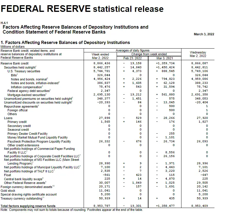 Wouldn't have came back to this stale thread but ran across a good read that explains my position. But first, you have not posted "balance sheets", you have posted factors affecting reserve balances. So, a higher number is a better number. I mean look at MBS. Climbed from January to March, almost the same from March to the current balance sheet. Precisely matching the cutoff of QE that I stated was March.Current balance sheet