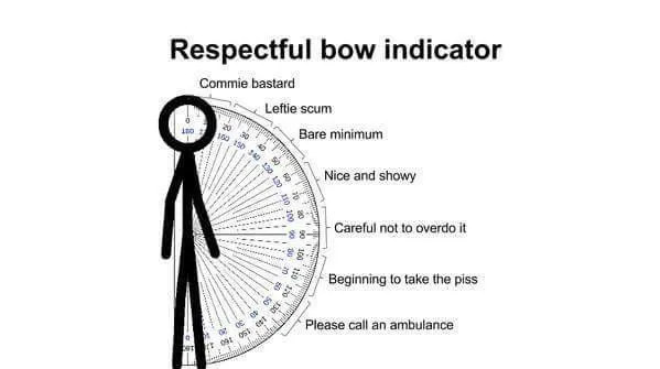 Yes, but we are talking about NOW aren't we? Comrade Bin Corbyn isn't at risk of having his head chopped off, ffs.And it still isn't courageous.It's a political statement, dimwit.I don't view bad manners as courageous at all.He's a dirty Marxist, I will give him some credit for having the balls to not bow to another human being. Though I wonder if he would bow for one of his famous comrades.