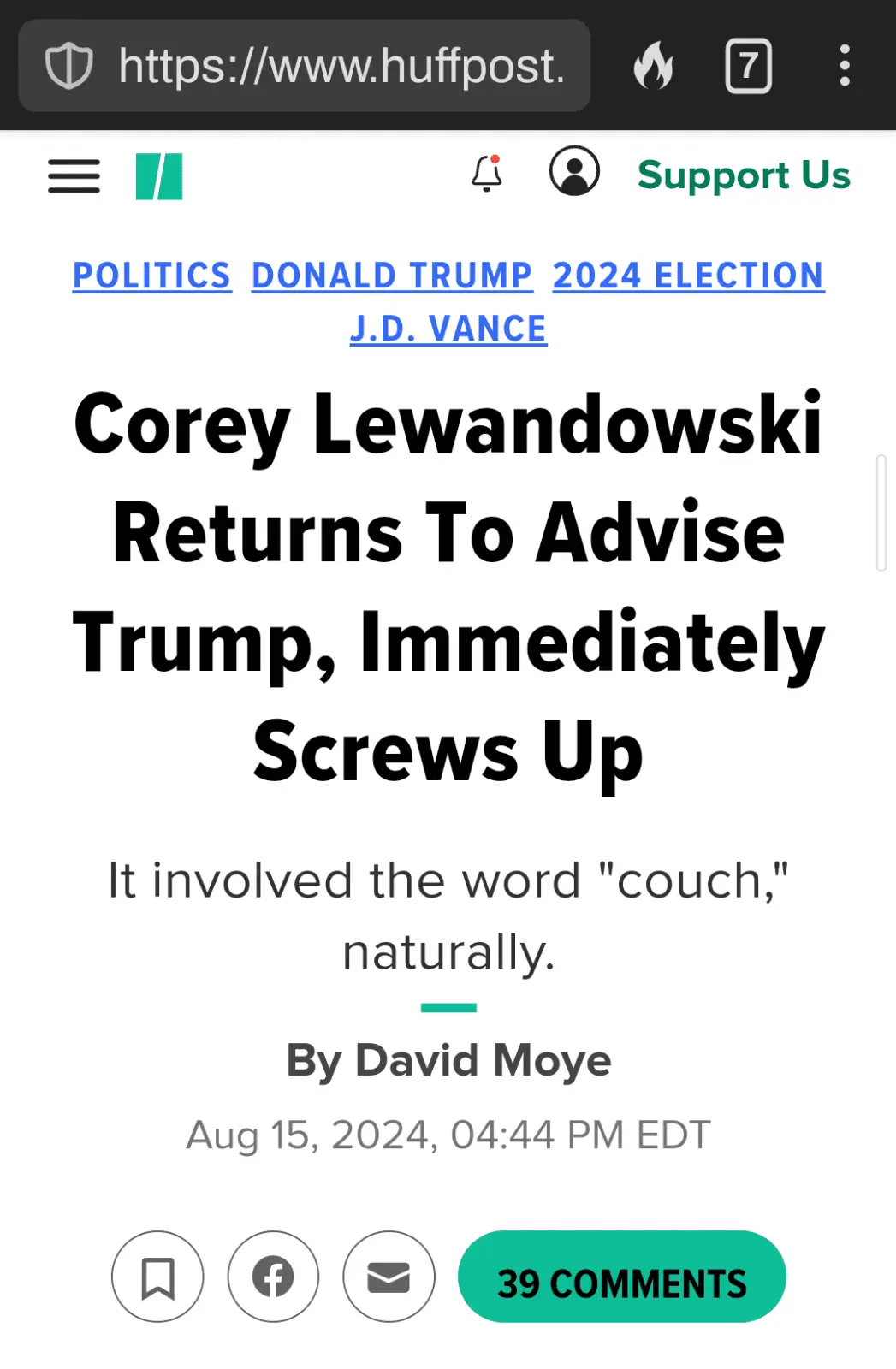 How is that “blowing it?”But then Lewandowski blew it with the final line: “Get off the couch and join us, the President needs your help.”