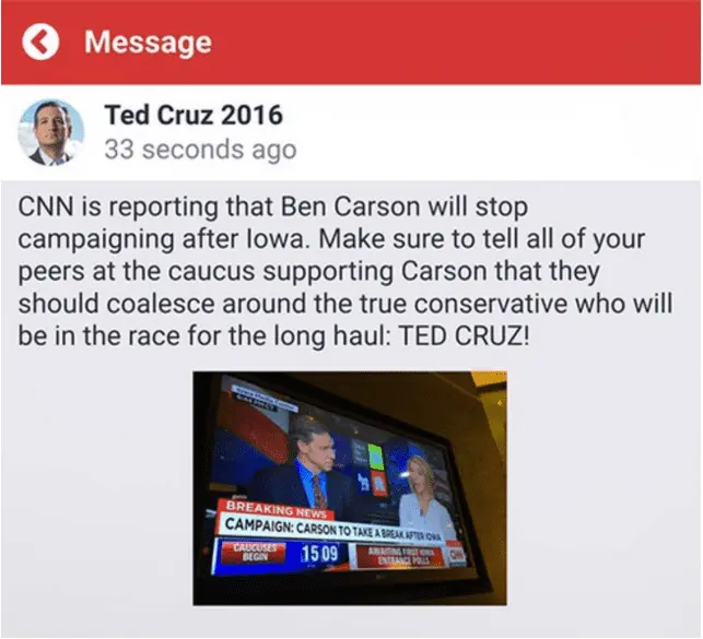 Yes. The time stamp was after the caucus began. Do you seriously think there were 6000 Carson supporters at the caucuses casting their votes who were checking the twitter releases of Cruz campaign staffers and suddenly switching their votes to Cruz? It boggles the mind