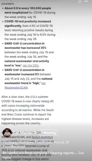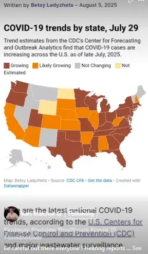 Covid infections of August 5 are picking up generally across the nation.