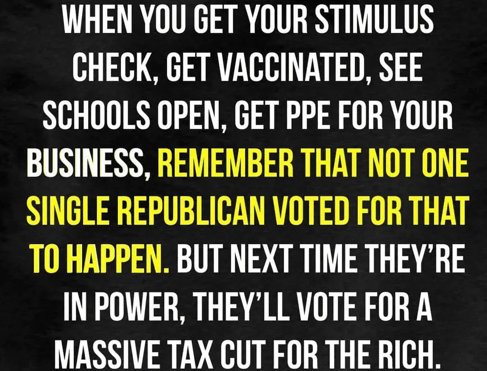 They voted to get covid relief out NOWOnly 80 million vaccinations have been given out so far. With two shots per person that leaves about 310 million people needing them...but you got yours so no further money is needed to get them done.Already got mine, as have my brothers and sister.