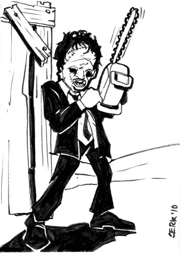 "When I got home, I decided to make a simple/child-like pencil figurine-rendering of the eerie 'Leatherface' who apparently made a mask made out of human skin and wore it one day before killing a cop and hanging his body on a wood-post hangman-type structure he made in his backyard (with his chainsaw). The house I visited that day wasn't that that old, but it was just old enough to make me feel 'nostalgic' about those quirky 'forgotten' niches of American history such as Williamsburg (Virginia). Strange..."