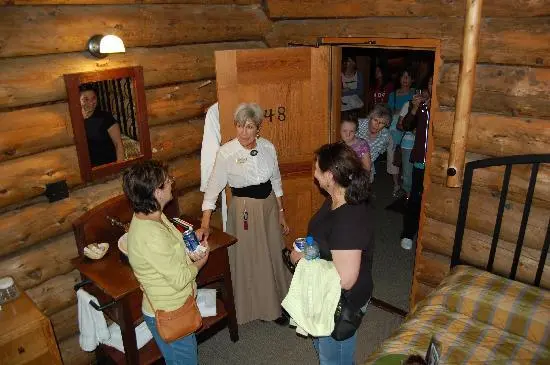 "The tour group sampled just one re-furbished room which was well-decorated, and the walls were lined with curved wood panels to make it seem/feel like a log-cabin section of the house. The guide explained to us that the room was meant to highlight some of the more 'romantic' features of that era of American architecture. I couldn't get 'Leatherface' out of my mind, however, and kept Felicia (the cat) close to my heart."